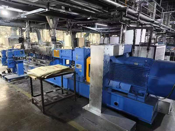 PP+30%GF 客戶生產(chǎn)現(xiàn)場(chǎng),美芝隆MTX75系列雙螺桿擠出機(jī)產(chǎn)量高達(dá)1.6t/h
